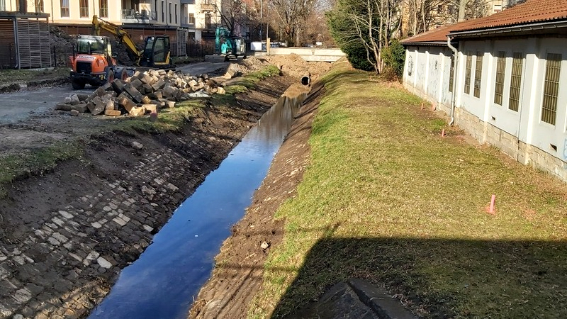Im Februar haben die Baumaßnahmen zur Renaturierung des Blasewitz-Grunaer-Landgrabens zwischen der Schandauer Straße und der Eibenstocker Straße sowie der Bau eines öffentlichen Spielplatzes begonnen.