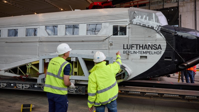 Die historische Lufthansa Junkers Ju 52 ist an ihrer neuen „Home Base“ eingetroffen und in das Konferenz- und Besucherzentrum der Lufthansa Group am Frankfurter Flughafen eingezogen.