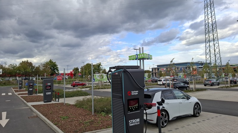 Noch schnell etwas einkaufen und gleichzeitig das E-Auto vollladen? Am Kaufpark Dresden an der Dohnaer Straße sollte das kein Problem sein.