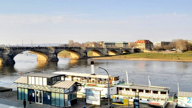 Von Mittwoch, 25. März, bis Freitag, 27. März 2026, werden an der Augustusbrücke die Bögen über der Elbe mittels eines Schubschiffs und Hubsteigers geprüft