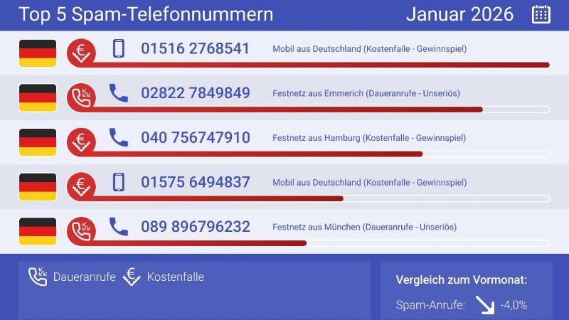 Gewinnspiel- und Vertragsmaschen dominieren weiterhin – diesmal besonders häufig über Mobilfunknummern aus Deutschland.