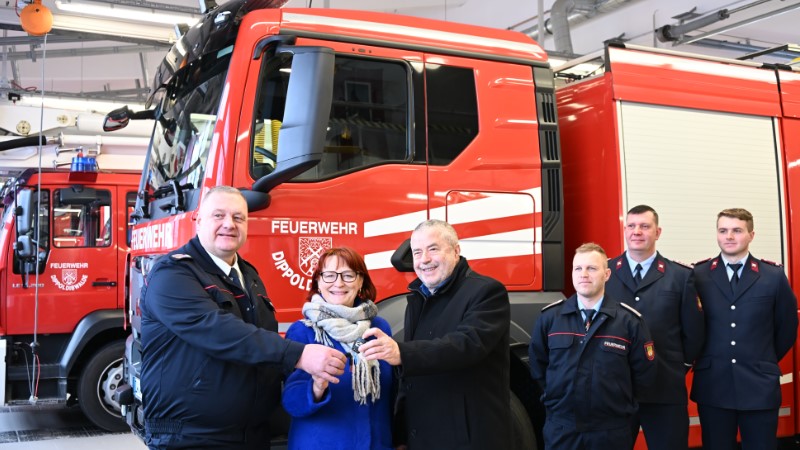 Im feierlichen Rahmen übergaben Landrat Michael Geisler und Oberbürgermeisterin Kerstin Körner am Freitag ein neues Tanklöschfahrzeug (TLF 4000 mit Zusatzbeladung Wasser) an Stadtwehrleiter Michael Ebert.