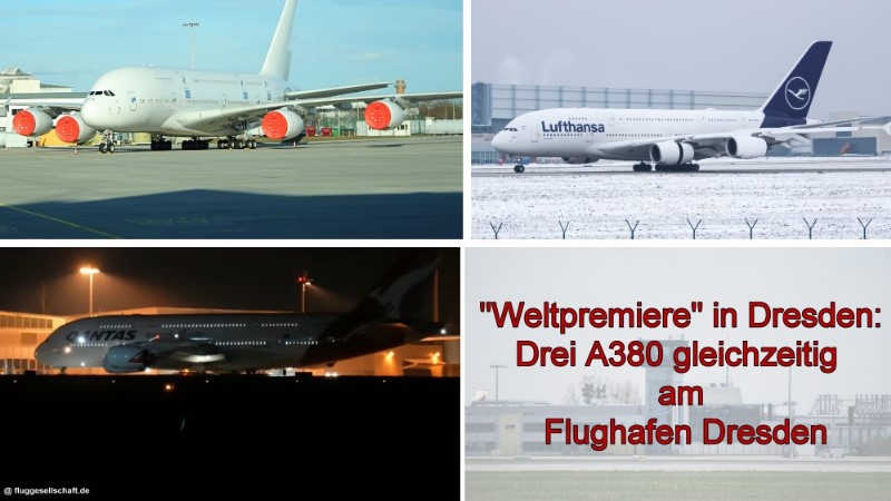 Dresden/DRS – Ein historisches Ereignis markiert einen neuen Höhepunkt in der "Dresdner Luftfahrtgeschichte". Am Sonntagabend landete ein weiterer A380 in Dresden. Damit sind gleich drei A380 am Flughafen Dresden.