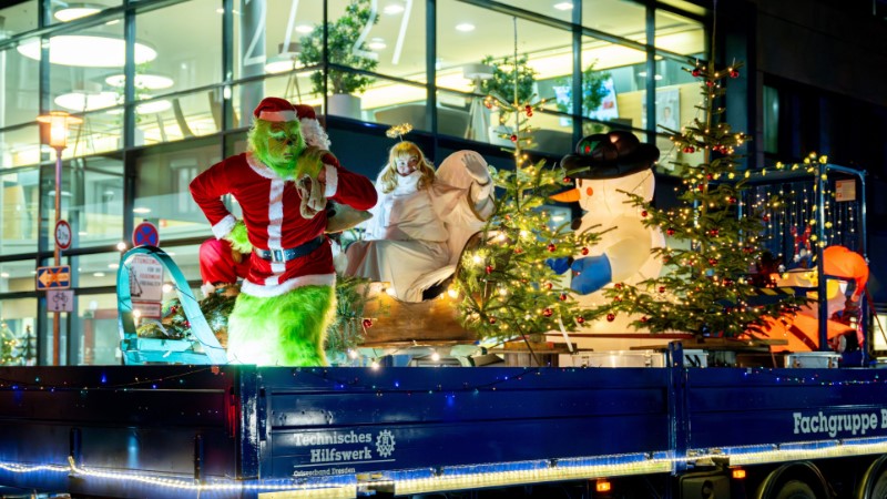 Am 12. Dezember sind sieben Fahrzeuge des THWs geschmückt mit Hunderten Lichtern durch den Campus des Klinikums gefahren.